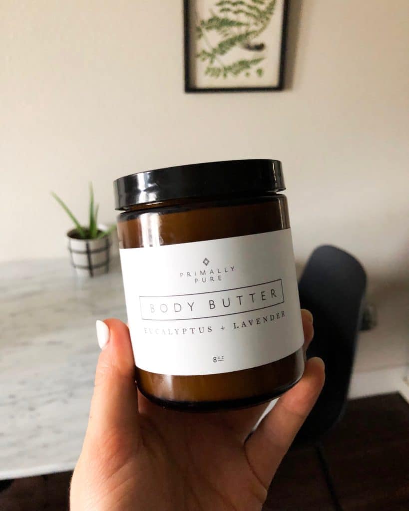 The best way to help dry skin is to moisturize. Seems easy right? Not always. I’ve tried SO MANY lotions and some of them actually made my eczema worse! Most of the lotions in stores have artificial fragrances and chemicals that can serve to further irritate your skin. The key is to use a gentle, high quality moisturizer. My favorite is Primally Pure’s Body Butter. I literally have a jar of it everywhere: my bathroom, my living room, my car and my purse. Having it stored in various places reminds me to constantly apply it, which is crucial to keeping your skin from drying out.