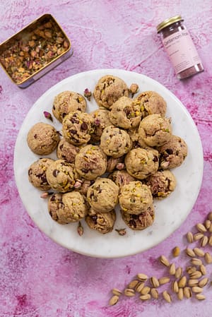 Embark on a culinary adventure with our Pistachio Rose Chocolate Chip Cookies! Inspired by a love for unique flavor combinations, these cookies are crafted with care and creativity. Picture this: velvety chocolate chips mingling with delicate hints of rose, all nestled within a crunchy pistachio-laden dough. Each bite is a nod to culinary innovation and a celebration of indulgence. Whether shared with loved ones or savored in solitude, these cookies promise to elevate your snacking experience to new heights.