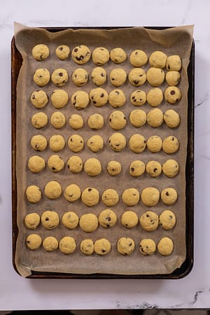 Scoop out 1.5 tbs of dough and place 2 inches apart on a prepared baking sheet with parchment paper